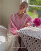Ea Shirt is a loose, feminine shirt made in 100% organic cotton, featuring a beautiful, romantic all-over print. It has long, voluminous balloon sleeves gathered into slim cuffs with button closure. The shirt features a deep V-neckline and a front placket with delicate mother-of-pearl buttons.