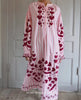 Elisabeth Dress is a casual yet feminine dress made in 100% organic cotton with yarn-dyed stripes. The dress has dropped shoulders with ruffles along the armholes. It features voluminous sleeves with gathers and small cuffs at the sleeve openings. The collar is gathered around the neckline, and the dress has a front placket with mother-of-pearl buttons. Side seam pockets are placed at the waist. The dress is decorated with delicate embroidery, including our signature heart motif placed at the chest, hem, sleeve frill, and at the lower part of the dress.