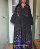 Irma Dress is made from 100% organic cotton poplin. It has a feminine A-shaped silhouette and a full-length fit. The dress features dark mother-of-pearl buttons all the way down the front. It has a flat collar stand and sleeves that are fitted at the top with a cutline above the elbows, opening into wide balloon sleeves with elastic cuffs. The dress is richly decorated with beautiful embroidery.