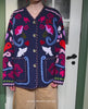 Maggie Jacket has a casual fit with two front pockets and buttons along the front placket. The jacket is made in organic cotton canvas and is decorated with beautiful Suzani embroidery forming a cross pattern along the edges and across the jacket. The embroidery features beautiful motifs such as flowers, peace doves, and other charming details.