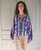 Zippy Top is a loose, feminine top made in 100% organic cotton. The top has dropped shoulders and sleeves finished with firm cuffs. It features tie strings at the front that can be styled open or tied. The top is decorated with Suzani evil-eye embroidery, placed at the front as a delicate detail.